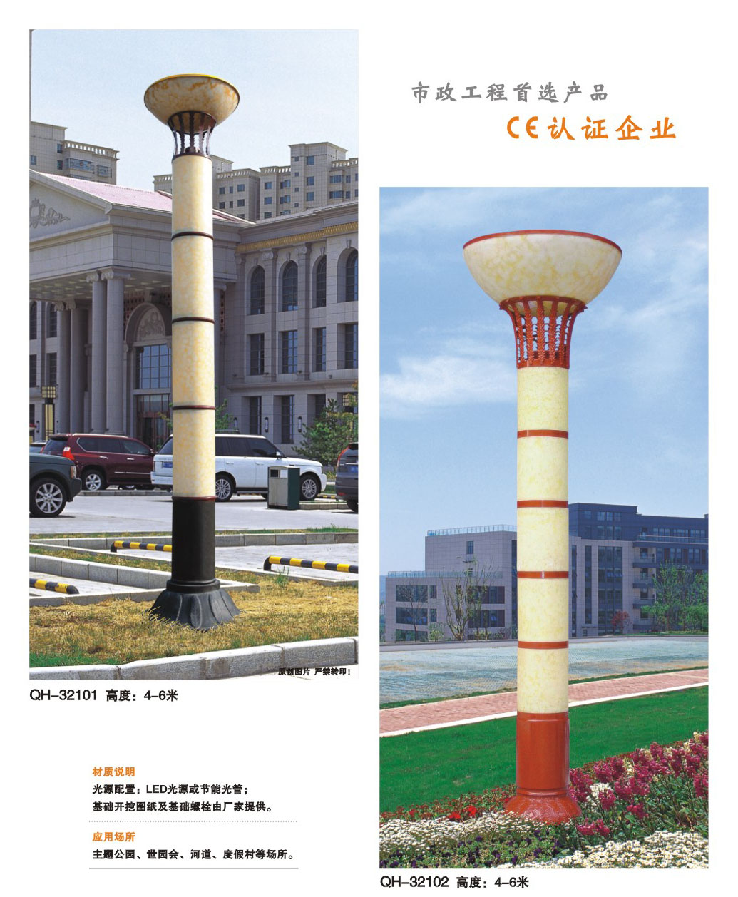 用途:景觀燈適用市政工程、園林亮化工程和公園、開發區、別墅區、廣場等戶外路燈照明工程